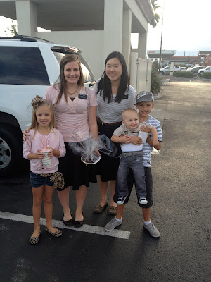 When I was little I remember always having the missioaries over for dinner. Living in Utah apparently they are harder to get a hold of! But the sign ups came around in Relief Society and I thought it would be a good opportunity for the kids to get to talk to the missionaries and serve them. Jeff had to go out of town last minute so I decided we'd meet the missionaries at In-n-out. They loved it, the kids asked lots of good questions and it was a fun evening!